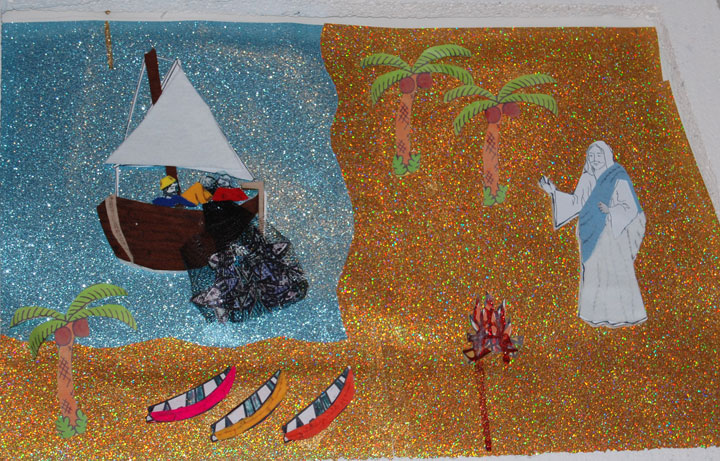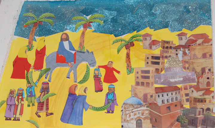 Over the past three weeks, they've been learning together about the Easter story, and as part of this they have created a frieze depicting details of the story - you can see the first Palm Sunday and the first Easter Day, along with one of Jesus' appearancs after his resurrection. If you want to see the children's actual work, it's in the window at the front of Kemsing church's north aisle.