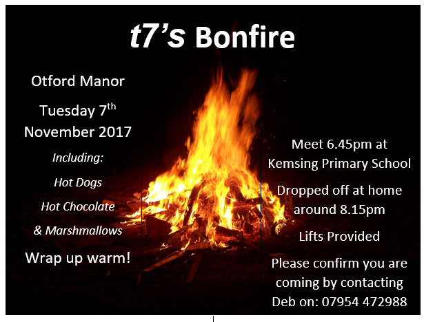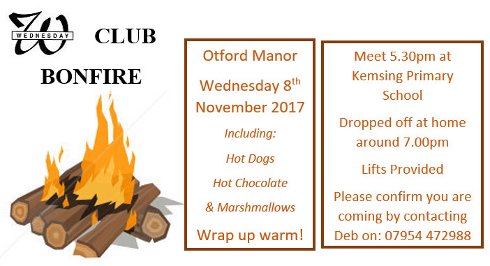 Wednesday Club is our club for school years 3 to 6, and T7 is our new youth club for those in school years 7 to 9. T7 will go to Otford Manor on Tuesday evening for a bonfire - with hot dogs, marshmallows and hot chocolate; Wednesday Club will have the same treat on Wednesday evening.